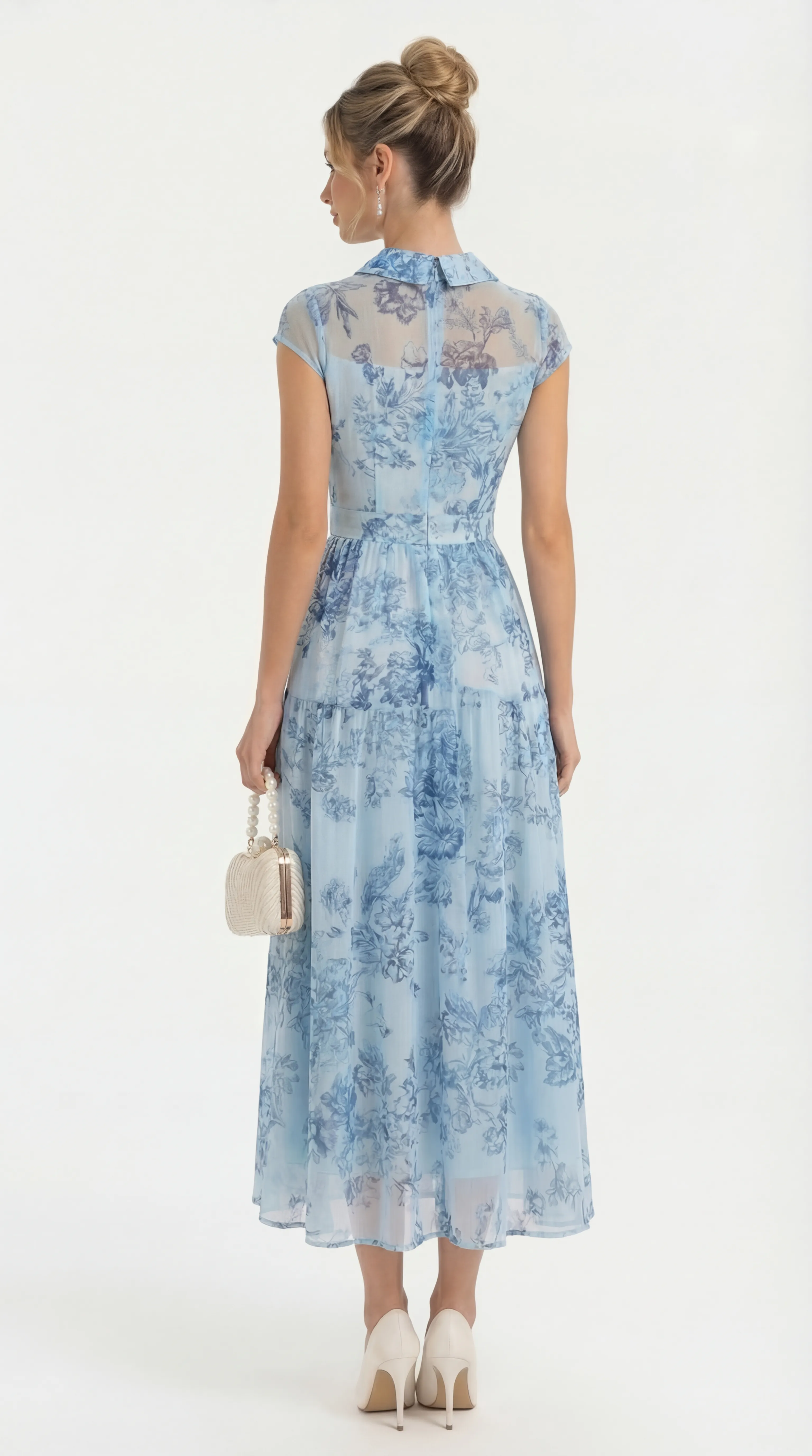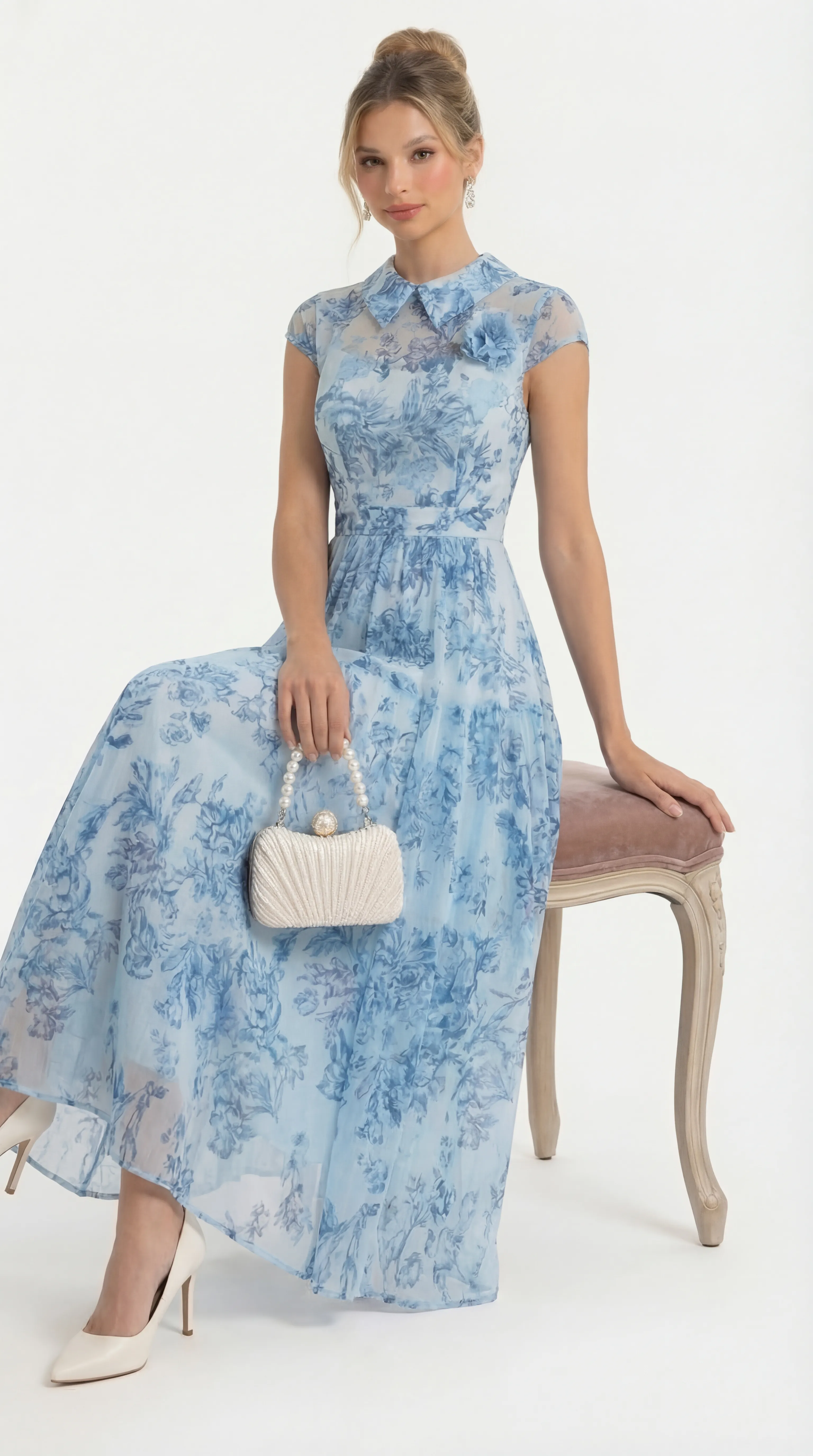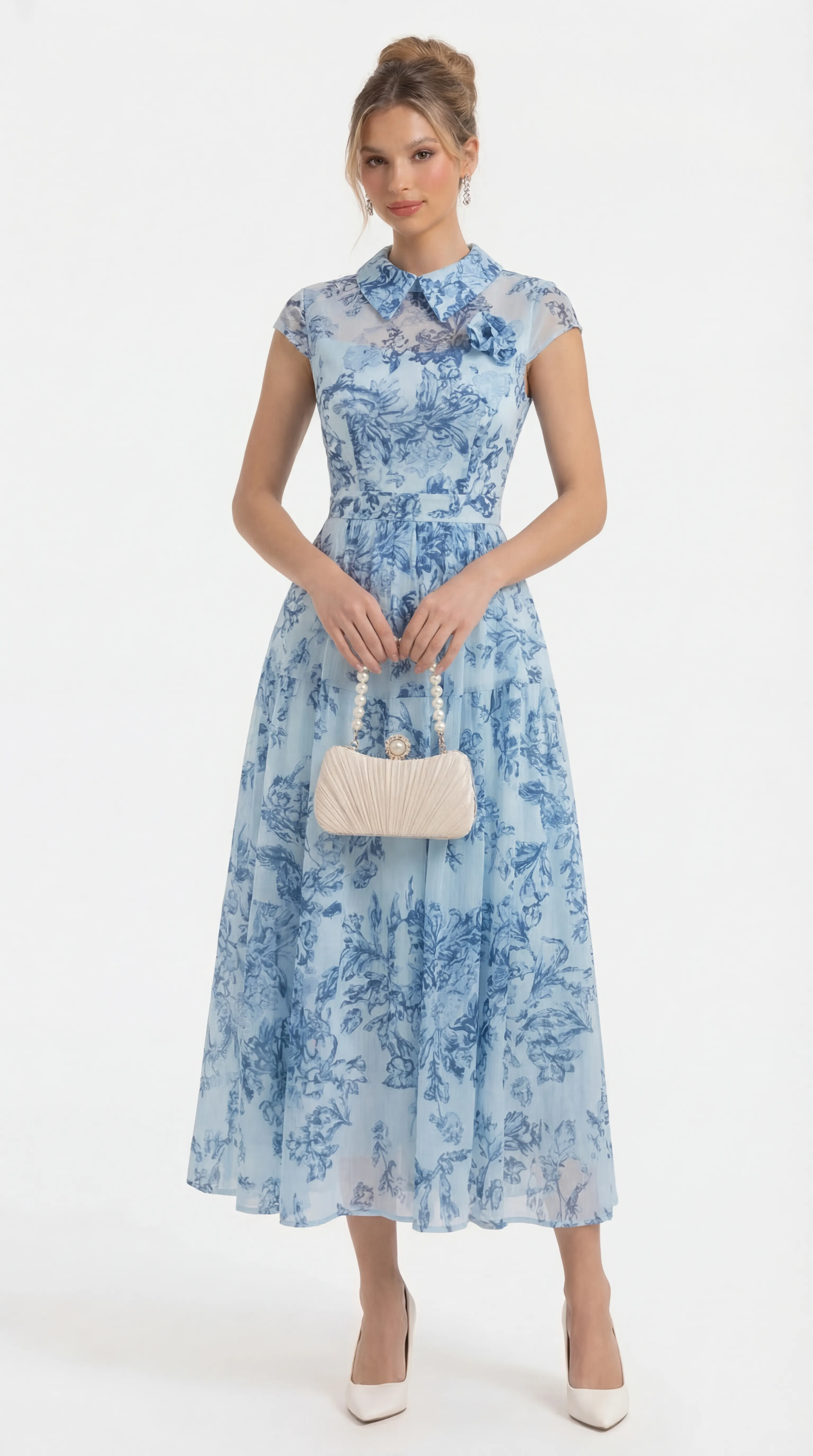 CERULEAN BLOOM SILK MIDI – MODERN ELEGANCE EDIT | MDU4969