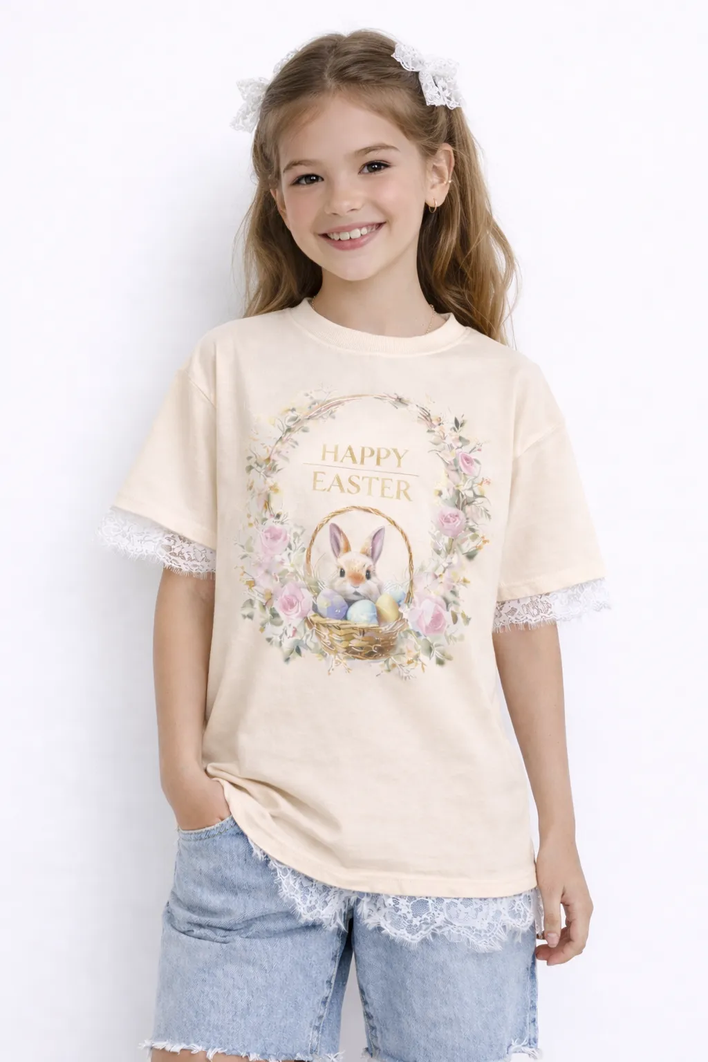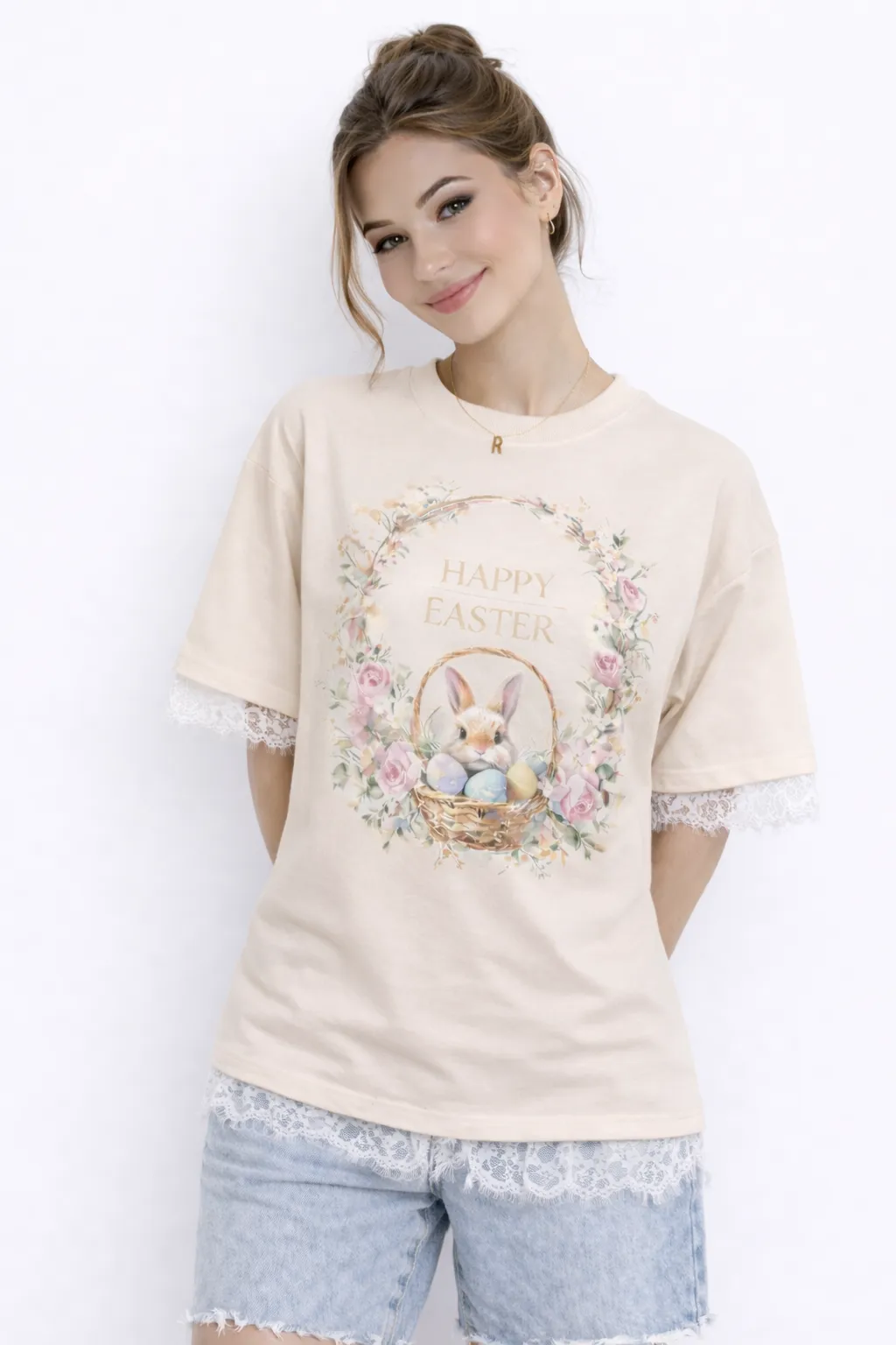 EASTER ENCHANTMENT – PREMIUM LACE-TRIMMED COTTON TEE | MUS423