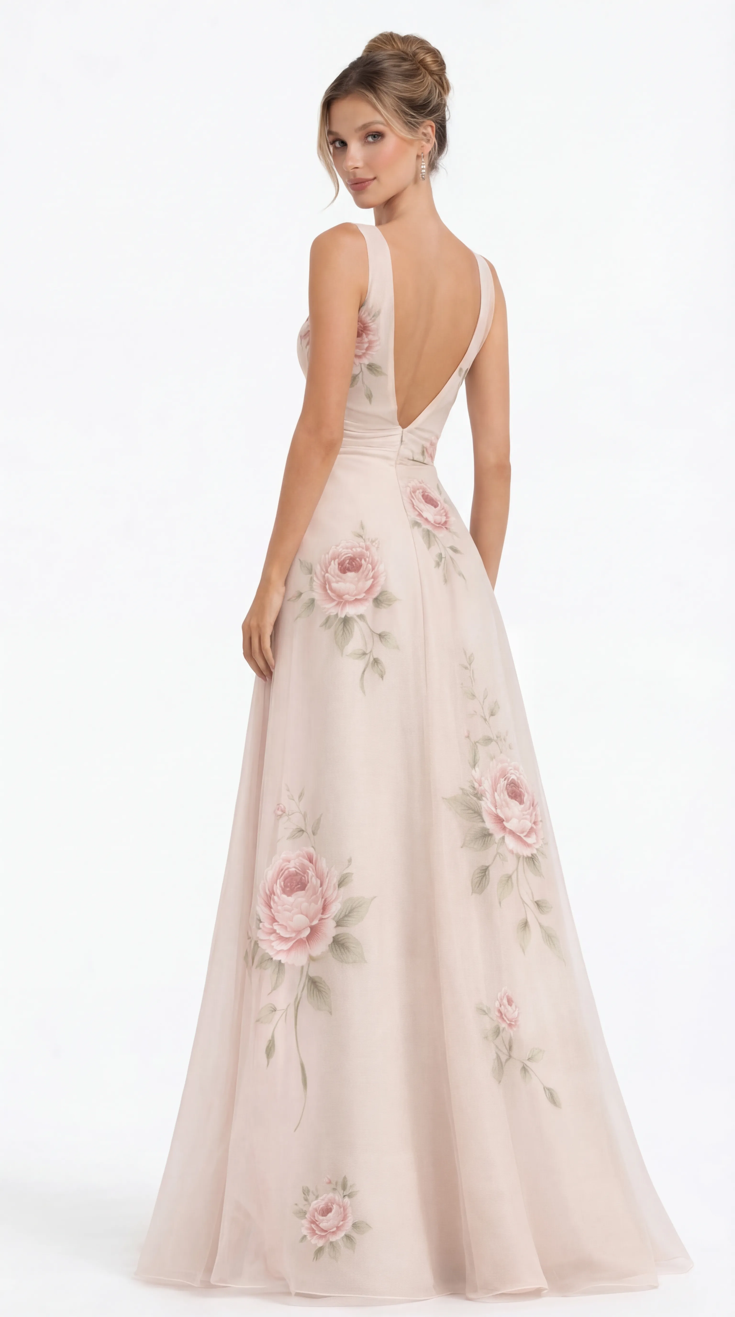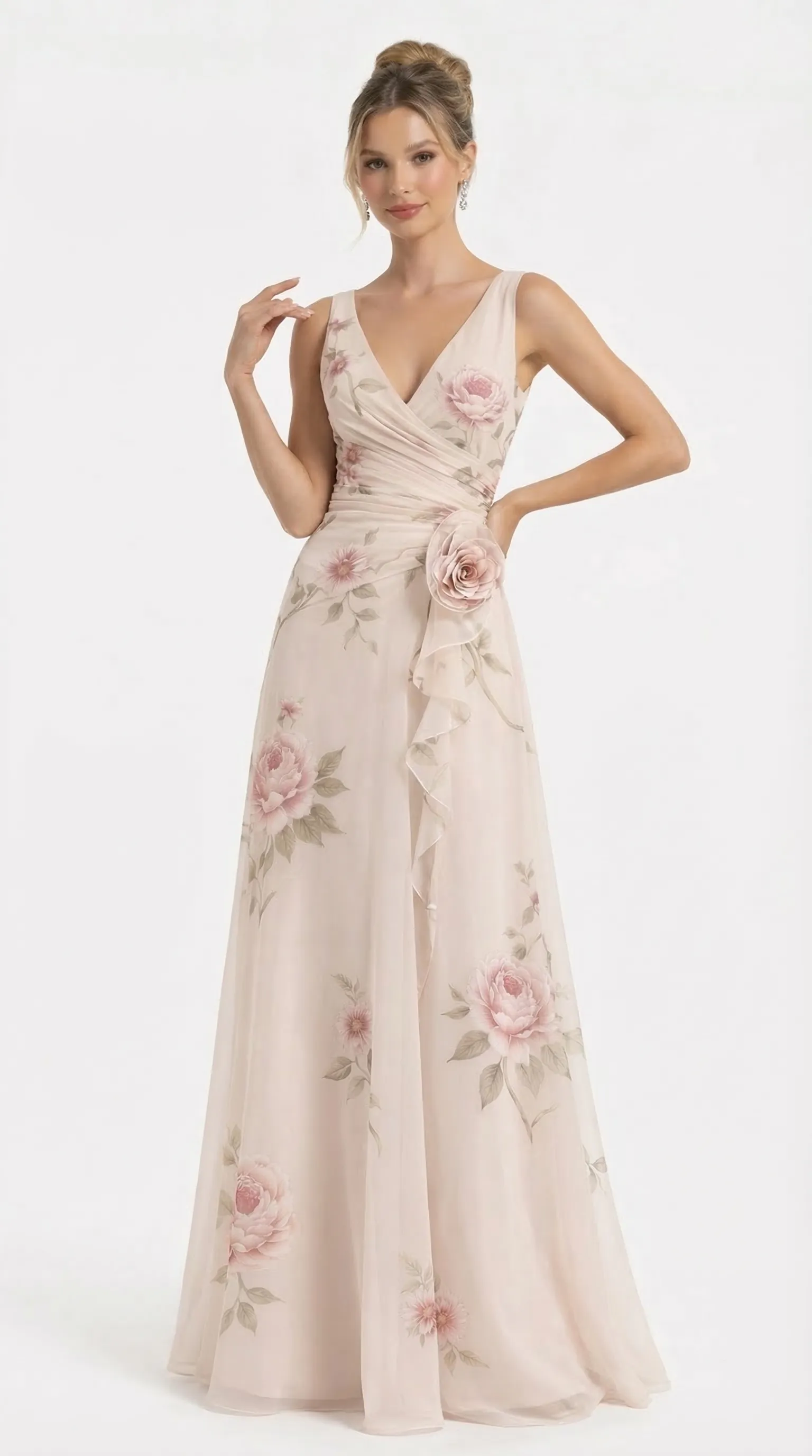ROMANTIC BLUSH ROSE GOWN – PREMIUM PRINTED SILK | MUS460